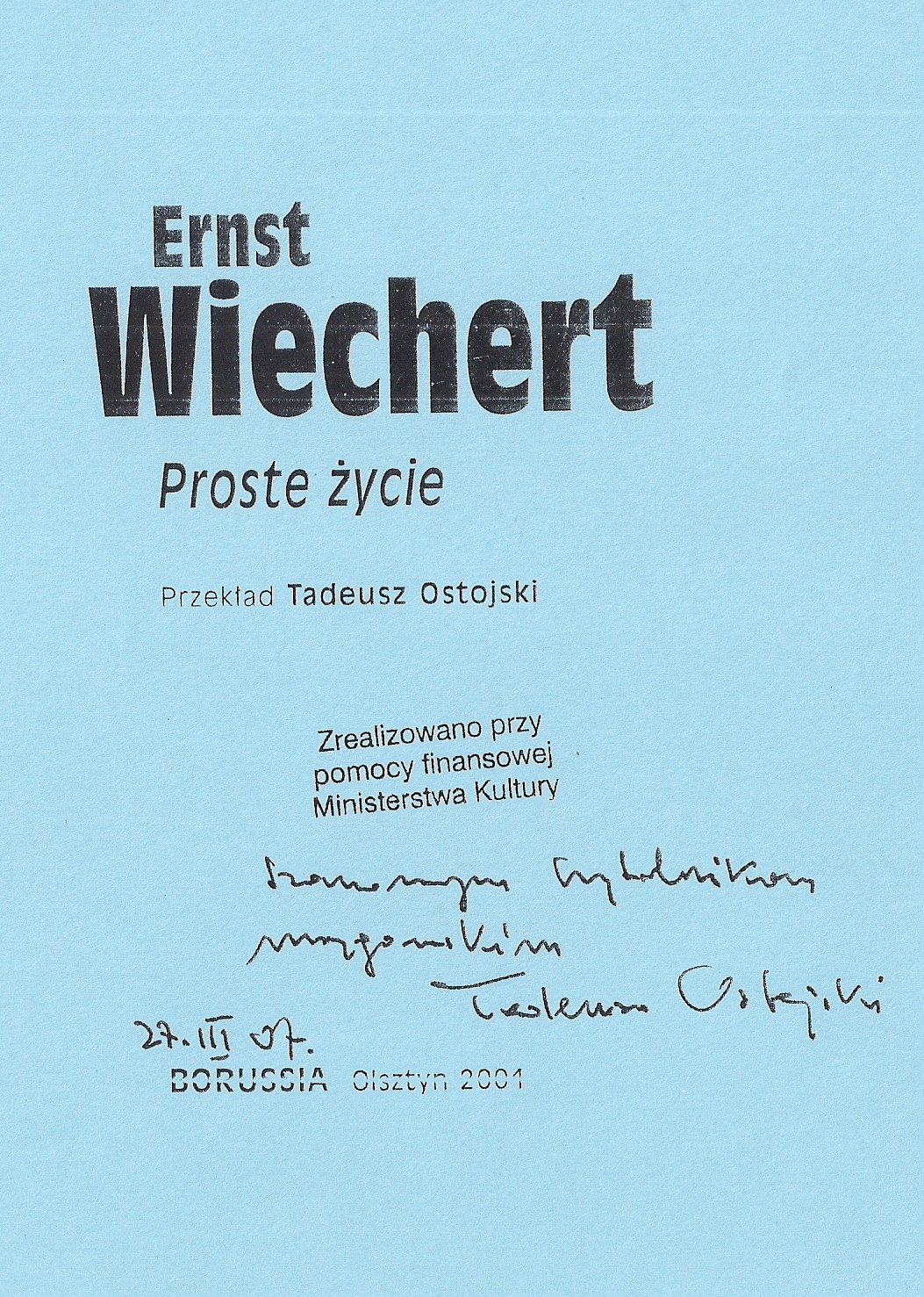 Ernst Wiechert ur. w 1887 roku, w mazurskiej wsi Piersławek niedaleko od Mrągowa. W całej swej twórczości czerpał inspirację z krainy dzieciństwa – Mazur oraz głęboko przeżywanych wątków biblijnych. Jego twórczość dzisiaj w Niemczech uległa częściowemu zapomnieniu. Dzięki tłumaczeniom swój renesans od lat przeżywa w Polsce, będąc dla wielu odkrywcą mazurskiej duchowości.