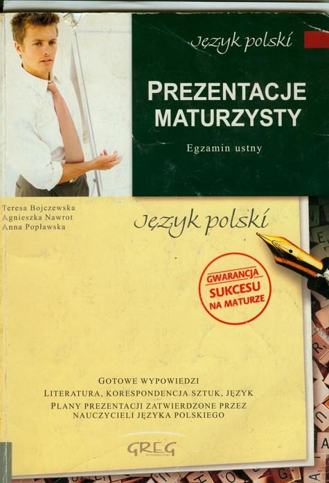 Na okł.: gotowe wypowiedzi, literatura, koresponde- ncja sztuk, język, plany prezentacji zatwierdzone przez nauczycieli języka polskiego.
