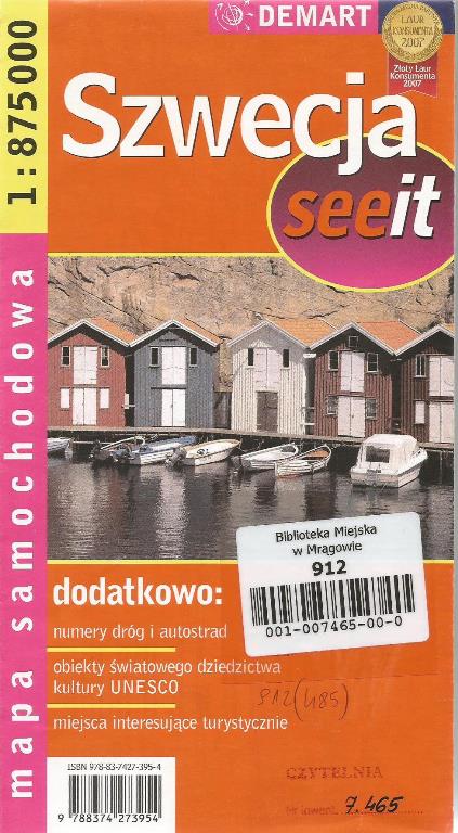 Szwecja : mapa samochodowa. - 1 :875 000. - Warszawa : Demart, 2007. - 1 mapa : kolor ; 98x68 cm, złoż. 22x12 cm.