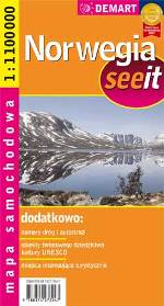 Norwegia : mapa samochodowa. - 1 :11 000 000. - Warszawa : Demart, 2007. - 1 mapa : kolor ; 98x68 cm, złoż. 22x12 cm.