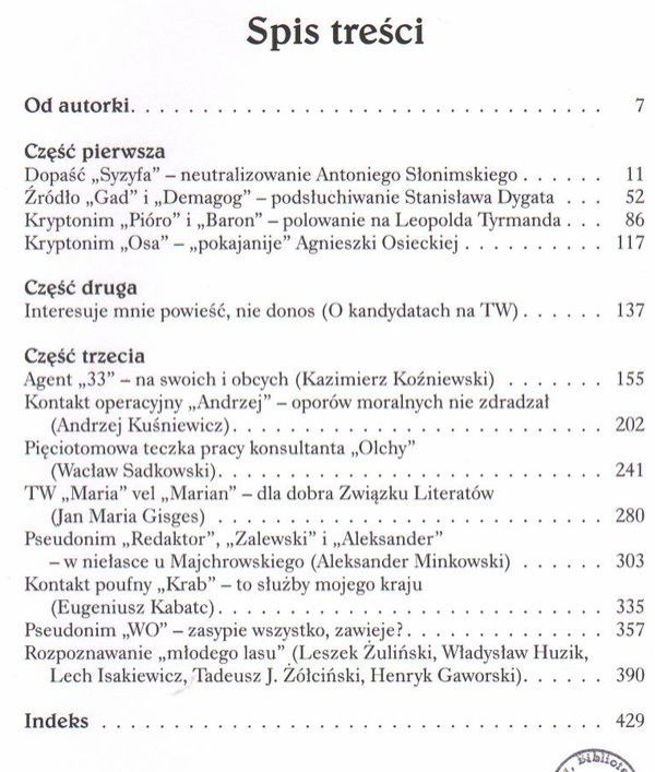 Indeks (nazwiska, pseudonimy, ważniejsze kryptonimy) s. 429 -[443].