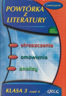 Powtórka z literatury : kl. 3. Cz. 3 A / Barbara Włodarczyk. - Kraków : Wydawnictwo Greg, [200-]. - 312 s. : il. ; 21 cm + Mini wersja : Powtórka z literatury.