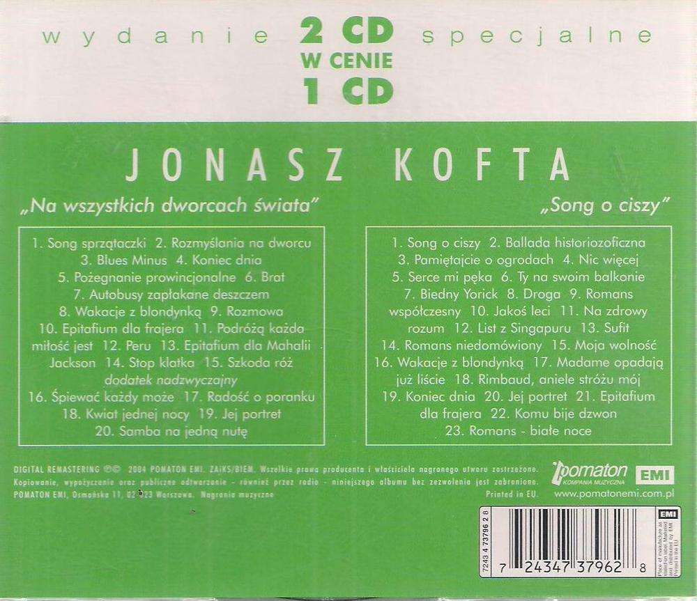 Na wszystkich dworcach świata : Song o ciszy / [słowa, wykonanie] Jonasz Kofta. - Warszawa : Pomaton EMI, 2004. - 2 płyty audio (CD) : zapis cyfrowy, stereo ; 12 cm.