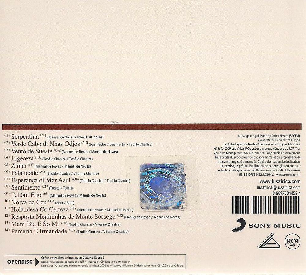Zawiera: Zawiera: Serpentina ; Verde Cabo di Nhas Odjos ; Vento de Sueste ; Ligereza ; Zinha ; Fatalidade ; Esperança di Mar Azul ; Sentimento ; Tchôm Frio ; Noiva de Ceu ; Holandesa Co Certeza ; Resposta Menininhas de Monte Sossego ; Mam'Bia É So Mi ; Parceria E Irmandade.