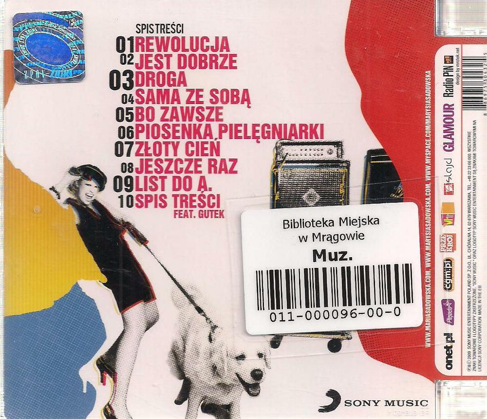 Spis treści / Maria Sadowska. - Warszawa : Sony Music Entertainment Polska, 2009. - 1 płyta audio (CD) : zapis cyfrowy, stereo ; 12 cm + broszura.