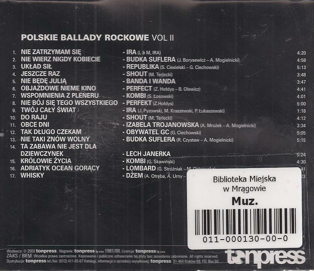 Zawiera: Zawiera: Nie zatrzymam się (Ira) ; Nie wierz nigdy kobiecie (Budka Suflera) ; Układ sił (Republika) ; Jeszcze raz (Shout) ; Nie będę Julią (Banda i Wanda) ; Objazdowe nieme kino (Perfect) ; Wspomnienia z pleneru (Kombi) ; Nie bój się tego wszystkiego (Perfect) ; Twój cały świat (Ira) ; Do raju (Shout) ; Obce dni (Izabela Trojanowska) ; Tak długo czekam (IObywatel GC) ; Nie taki znów wolny (Budka Suflera) ; Ta zabawa nie jest dla dziewczynek (Lech Janerka) ; Królowe życia (Kombi) ; Adriatyk ocean goracy (Lombard) ; Whisky (Dżem).