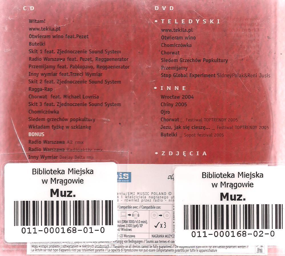 Zawiera: Zawiera: Witam ; www.tekila.pl ; Otwieram wino feat. Pezet ; Butelki ; Skit 1 feat. Zjednoczenie Sound System ; Radio Warszawa feat. Pezet, Reggaenerator ; Przemijamy feat. Pablopavo, Reggaenator ; Inny wymiar feat. Trzeci Wymiar ; Skit 2 feat. Zjenoczenie Sound System ; Ragga - Rap ; Chorwat feat. Michael Lovrisa ; Skit 3 feat. Zjednoczenie Sound System ; Chomiczówka ; Siedem grzechów popkultury ; Wkładam łyżkę w szkalnkę ; Radio Warszawa [A2 rmx] ; Radio Warszawa [Radioaktiv rmx] ; Inny wymiar [Deejay Delta rmx]. ; DVD 1. www.tekila.pl (teledysk) ; Otwieram wino (teledysk) ; Chomiczówka (teledysk) ; Chorwat (teledysk) ; Siedem Grzechów Popkultury (teledysk) ; Stop Global Experiment (feat Reni Jusis) (teledysk) 7. Przemijamy (klip nakręcony w Chinach) (teledysk) - making of "Chomiczówka" - making of "Przmijamy" (z Chin) - Chomiczówka - wersja podwodna - Ojro - numer z nowej płyty nagrany na próbie na "setkę" - Butelki - występ podczas Festiwalu w Sopocie (TVN)