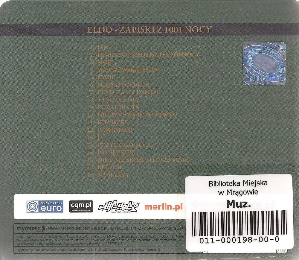Zapiski z 1001 Nocy / Eldo. - Poznań : My Music, 2010. - 1 płyta audio (CD) : zapis cyfrowy, stereo ; 12 cm.