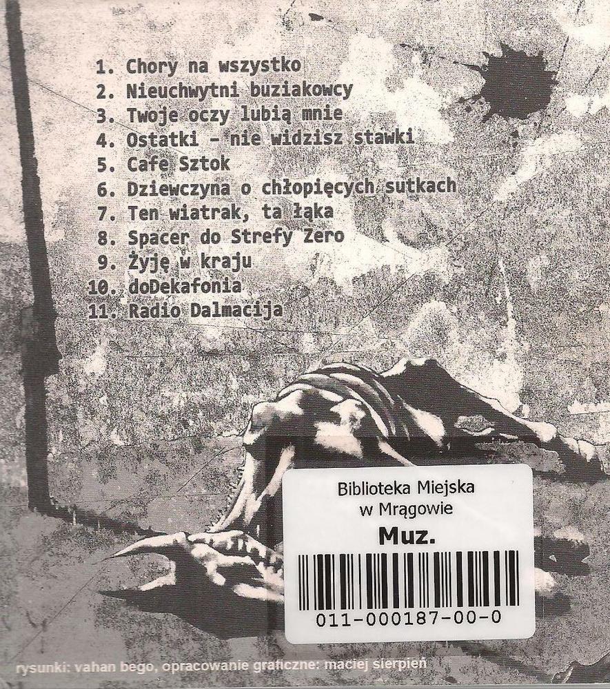 Zawiera: Zawiera: Chory na wszystko ; Nieuchwytni buziakowcy ; Twoje oczy lubią mnie ; Ostatki - nie widzisz stawki ; Cafe Sztok ; Dziewczyna o chłopięcych sutkach ; Ten wiatrak, ta łąka ; Spacer do Strefy Zero ; Żyję w kraju ; doDekafonia ; Radio Dalmacija.