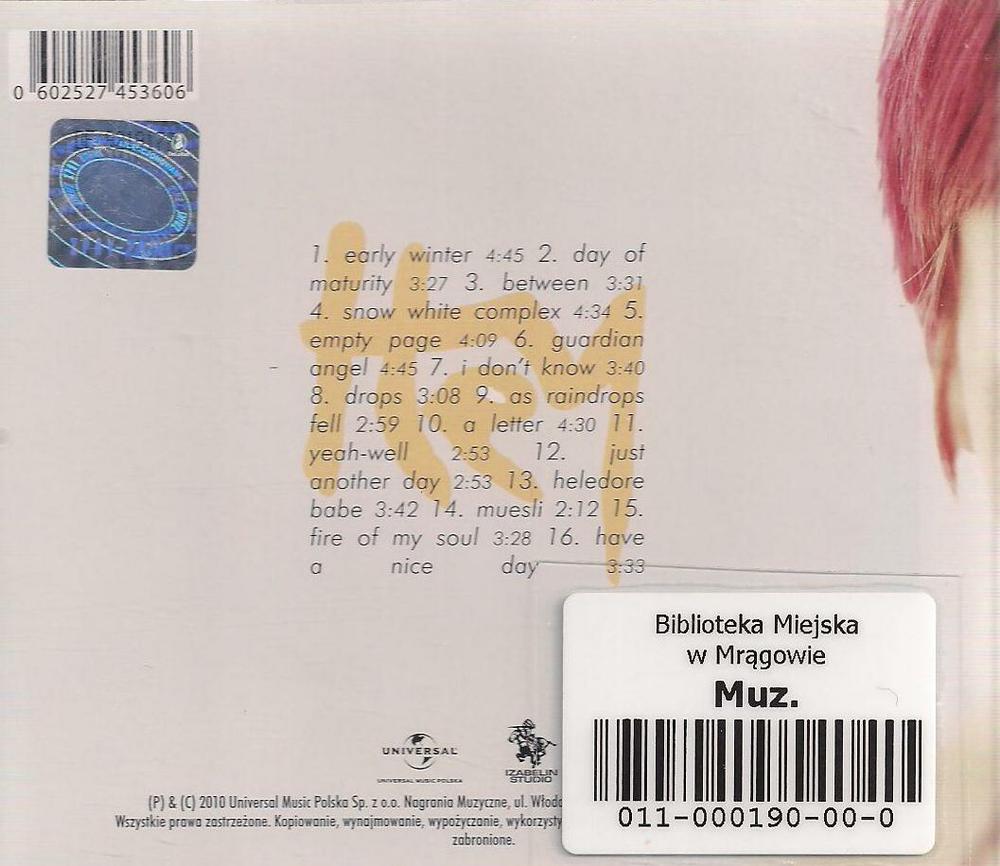 Zawiera: Zawiera: Early Winter ; Day Of Maturity ; Between ; Snow White Complex ; Empty Page ; Guardian Angel ; I don't Know ; Drops ; As Raindrops Fell ; A Letter ; Yeah-well ; Just Another Day ; Heledore Babe ; Muesli ; Fire Of My Soul ; Have A Nice Day.