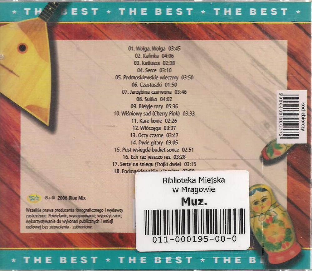 Zawiera: Zawiera: Wołga, Wołga - Andrzej Skupiński ; Kalinka - Dorota Bębenek ; Katiusza - Dorota Bębenek ; Serce - Adam Żak ; Podmoskiewskie wieczory - Dorota Bębenek ; Czastuszki - Andrzej Skupiński ; Jarzębina czerwona - Dorota Bębenek ; Suliko - Monika Boras ; Biełyje rozy - Monika Boras ; Wiśniowy sad (Cherry Pink) - Monika Boras ; Kare konie - Monika Boras, Adam Piekarski ; Włóczęga - Starling ; Oczy czarne - Andrzej Tenard ; Dwie gitary - Andrzej Tenard ; Pust wsiegda budiet sonce - Justyna Biechcicka, Piotr Biechcicki ; Ech raz jeszczo raz - Justyna Biechcicka, Piotr Biechcicki ; Serce na sniegu (Trojki dwie) - Justyna Biechcicka, Piotr Biechcicki ; Podmaskiewskije wiecziera - Dorota Bębenek.
