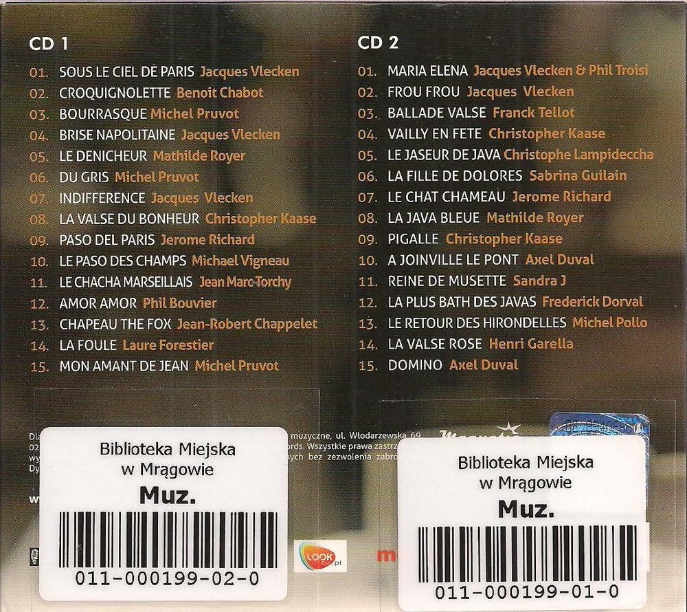 Zawiera CD 2: Jacques Vlecken & Phil Troisi - Maria Elena ; Jacques Vlecken - Frou Frou ; Franck Tellot - Ballade Valse ; Christopher Kaase - Vailly En Fete ; Christophe Lampideccha - Le Jaseur De Java ; Sabrina Guilain - La Fille De Dolores ; Jerome Richard - Le Chat Chameau ; Mathilde Royer - La Java Bleue ; Christopher Kaase - Pigalle ; Axel Duval - A Joinville Le Pont ; Sandra J - Reine De Musette ; Frederick Dorval - La Plus Bath Des Javas ; Michel Pollo - Le Retour Des Hirondelles ; Henri Garella - La Valse Rose ; Axel Duval - Domino.