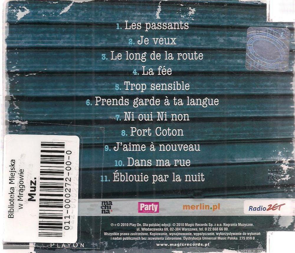 Zawiera: Zawiera: Les passants ; Je veux ; Le long de la route ; La fée ; Trop sensible ; Prends garde a ta langue ; Ni oui ni non ; Port Coton ; J'aime a nouveau ; Dans ma rue ; Eblouie par l a nuit.