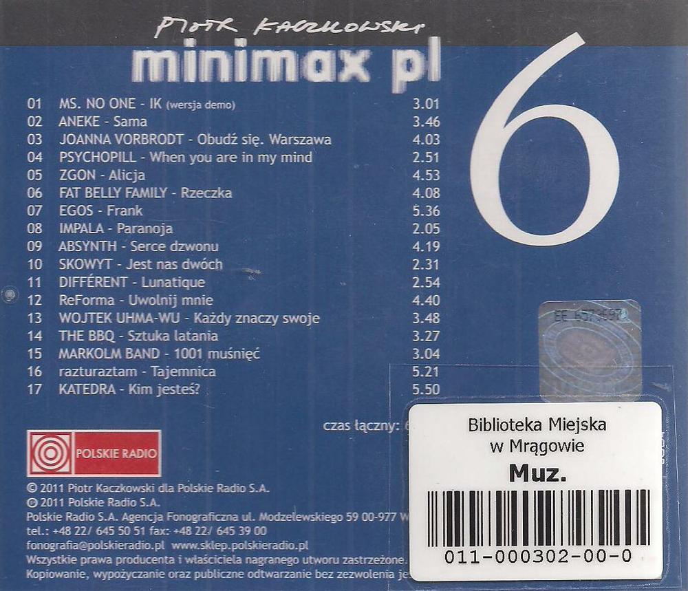 Zawiera: Zawiera: Ms. No One - Ik (Wersja demo) ; Aneke - Sama ; Joanna Vorbrodt - Obudź się. Warszawa ; Psychopill - When You Are In My Mind ; Zgon - Alicja ; Fat Belly Family - Rzeczka ; Egos - Frank ; Impala - Paranoja ; Absynth - Serce dzwonu ; Skowyt - Jest nas dwóch ; Different - Lunatique ; Reforma - Uwolnij mnie ; Wojtek Uhma-wu - Każdy znaczy swoje ; The Bbq - Sztuka latania ; Marcolm Band - 1001 muśnięć, razturaztam - tajemnica ; Katedra - Kim jesteś?