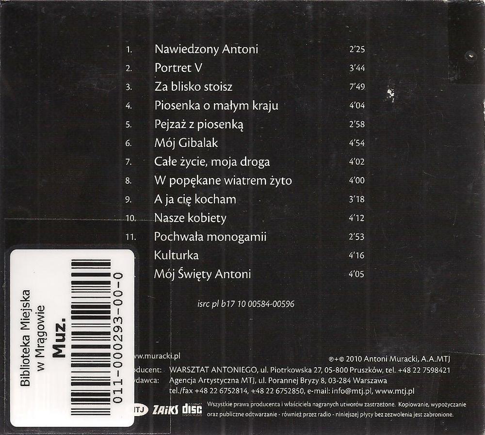 Zawiera: Zawiera: Nawiedzony Antoni ; Portret V ; Za blisko stoisz ; Piosenka o małym kraju ; Pejzaż z piosenką ; Mój Gibalak ; Całe życie, moja droga ; W popękane wiatrem żyto ; A ja cię kocham tyle lat ; Nasze kobiety ; Pochwałą monogamii ; Kulturka ; Mój święty Antoni.