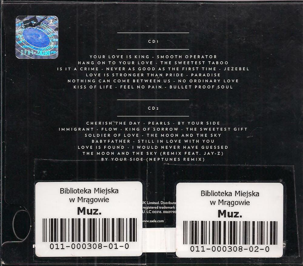 Zawiera: Zawiera: CD 1. Your Love Is King ; Smooth Operator ; Hang On To Your Love ; The Sweetest Taboo ; Is It A Crime ; Never As Good As The First Time ; Jezebel ; Love Is Stronger Than Pride ; Paradise ; Nothing Can Come Between Us ; No Ordinary Love ; Kiss Of Life ; Feel No Pain ; Bullet Proof Soul.