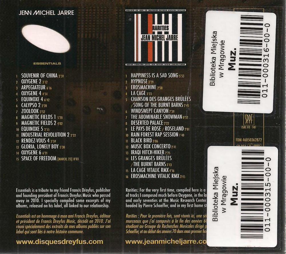 Essentials & Rarities / muzyka Jean Michel Jarre. - Warszawa : Dream Music, 2011. - 2 płyty audio (CD) : zapis cyfrowy, stereo ; 12 cm.