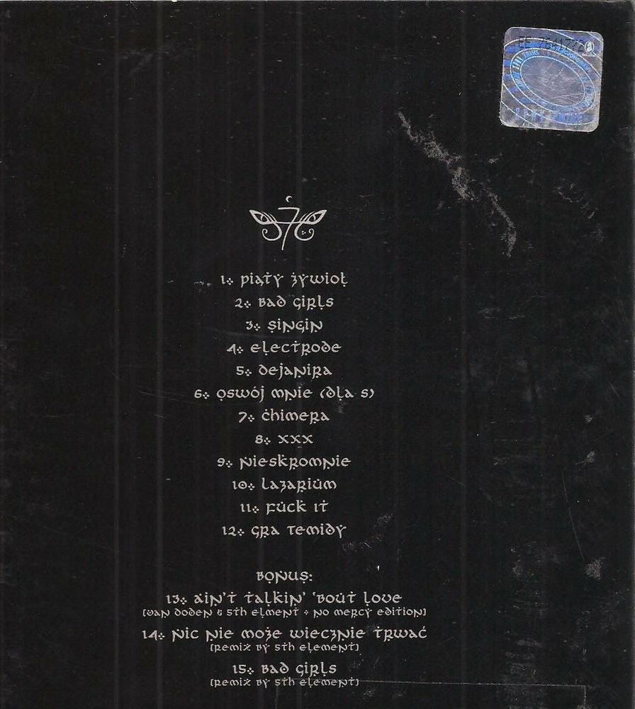 Zawiera: Zawiera: Piąty żywioł ; Bad Girl ; Singin ; Electrode ; Dejanira ; Oswój mnie ; Chimera ; XXX ; Nieskromnie ; Lazarium ; Fuck It ; Gra Temidy ; Ain't Talkin' 'Bout Love (Van Doden & 5Th Element - No Mercy Edition) (Bonus) ; Nic nie może wiecznie trwać (Remix By 5th Element) (Bonus) ; Bad Girlls (Remix By 5th Element) (Bonus).
