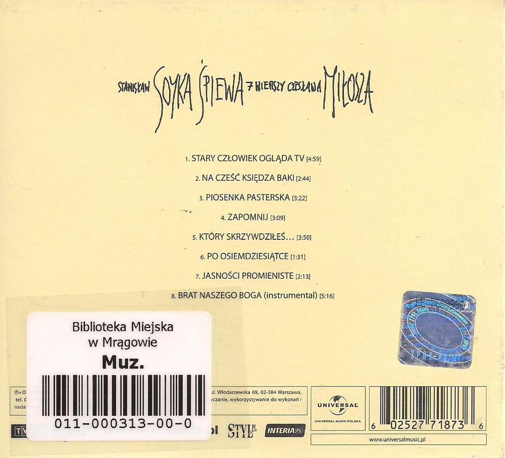 Zawiera: Zawiera: Stary człowiek ogląda TV ; Na cześć księdza Baki ; Piosenka pasterska ; Zapomnij ; Który skrzywdziłeś... ; Po osiemdziesiątce ; Jasności promieniste ; Brat naszego Boga (instrumental).