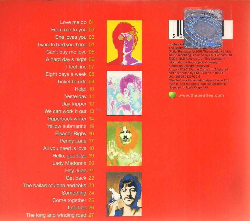 Zawiera: Zawiera: Love Me Do ; From Me To You ; She Loves You ; I Want To Hold Your Hand ; Can't Buy Me Love ; A Hard Day's Night ; I Feel Fine ; Eight Days A Week ; Ticket To Ride ; Help! ; Yesterday ; Day Tripper ; We Can Work It Out ; Paperback Writer ; Yellow Submarine ; Eleanor Rigby ; Penny Lane ; All You Need Is Love ; Hello Goodbye ; Lady Madonna ; Hey Jude ; Get Back ; The Ballad Of John & Yoko ; Something ; Come Together ; Let It Be ; The Long And Winding Road