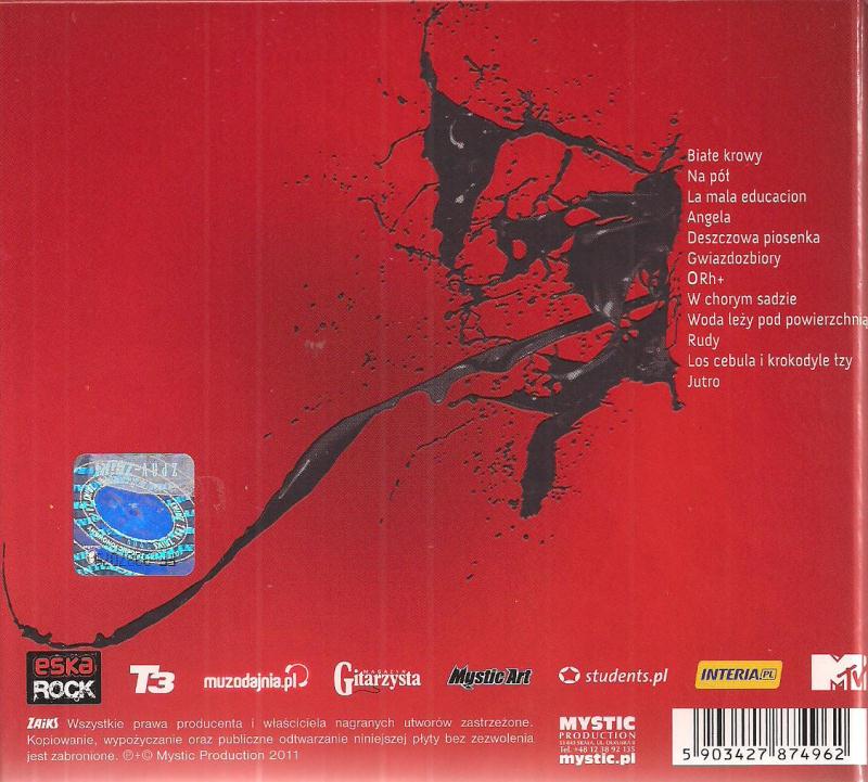Zawiera: Zawiera: Białe krowy ; Na pół ; La mala educacion ; Angela ; Deszczowa piosenka ; Gwiazdozbiory ; 0RH+ W chorym sadzie ; Woda leży pod powierzchnią ; Rudy ; Los cebula i krokodyle łzy ; Jutro.