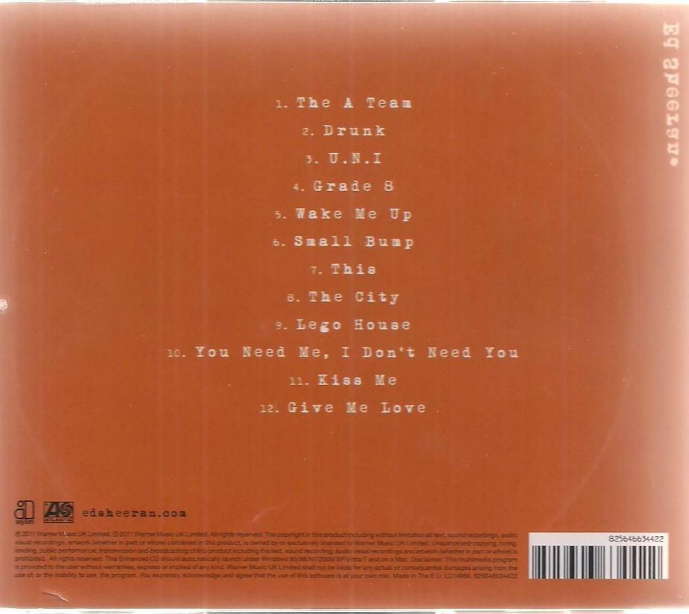 Zawiera: Zawiera: The A Team ; Drunk ; U.N.I. ; Grade 8 ; Wake Me Up ; Small Bump ; This ; The City ; Lego House ; You Need Me, I Don't Need You ; Kiss Me ; Give Me Love.