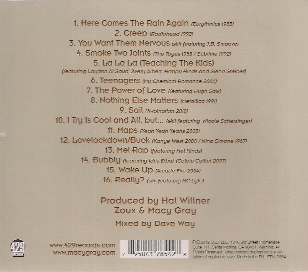 Zawiera: Zawiera: Here comes the rain again (Eurythmics) ; Creep (Radiohead) ; You want them nervous ; Smoke two joints (The Toyes) ; La la la (Teaching The Kids) ; Teenagers (My Chemical Romance) ; The power of love ; Nothing else matters (Metallica) ; Sail (Awolnation) ; I try is cool and all but ; Maps (Yeah Yeah Yeahs) ; Love lockdown/Buck ; Mel rap (featuring Mel Hinds) ; Bubbly ; Wake up (Arcade Fire) ; Really?.