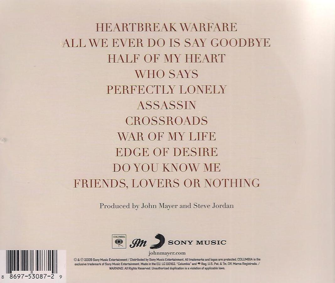 Zawiera: Zawiera: Heartbreak Warfare ; All We Ever Do Is Say Goodbye ; Half Of My Heart (with Taylor Swift) ; Who Says ; Perfectly Lonely ; Assassin ; Crossroads ; War Of My Life ; Edge Of Desire ; Do You Know Me ; Friends, Lovers Or Nothing.