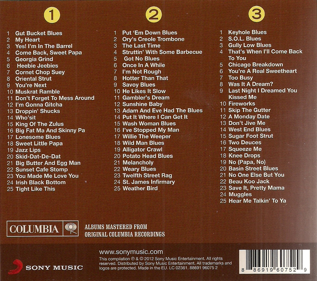 Zawiera: Zawiera: CD 2. Put 'Em Down Blues ; Ory's Creole Trombone ; The Last Time ; Struttin' With Some Barbecue ; Got No Blues ; Once In A While ; I'm Not Rough ; Hotter Than That ; Savoy Blues ; He Likes It Slow ; Gambler's Dream ; Sunshine Baby ; Adam And Eve Had The Blues ; Put It Where I Can Get It ; Wash Woman Blues ; I've Stopped My Man ; Willie The Weeper ; Wild Man Blues ; Alligator Crawl ; Potato Head Blues ; Melancholy ; Weary Blues ; Twelfth Street Rag ; St. James Infirmary ; eather Bird.