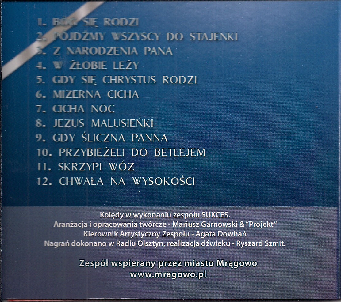 Zawiera: Zawiera: Bóg się rodzi ; Pójdźmy wszyscy do stajenki ; Z narodzenia Pana ; W żłobie leży ; Gdy się Chrystus rodzi ; Mizerna cicha ; Cicha noc ; Jezus malusieński ; Gdy śliczna panna ; Pryzbieżeli do Betlejem ; Skrzypi wóz ; Chwała na wysokości.