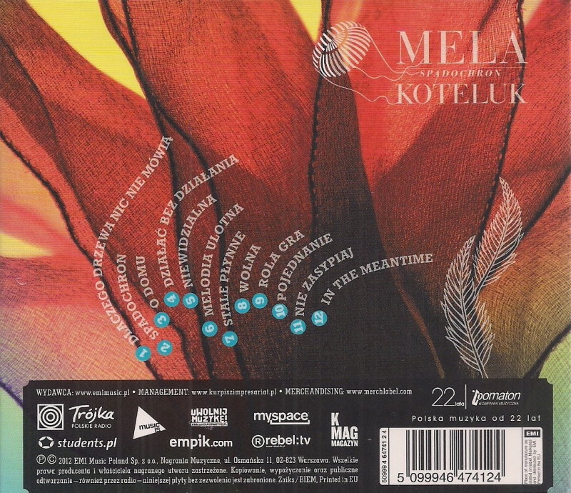 Spadochron / Mela Koteluk. - Lubrza : Recpublika Studios, 2012. - 1 płyta audio (CD) : zapis cyfrowy, stereo ; 12 cm.