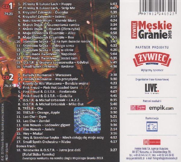 Męskie Granie 2013. - Warszawa : Polskie Radio Agencja Muzyczna, 2013. - 2 płyty audio (CD) : zapis cyfrowy, stereo ; 12 cm + dodatek drukowany.