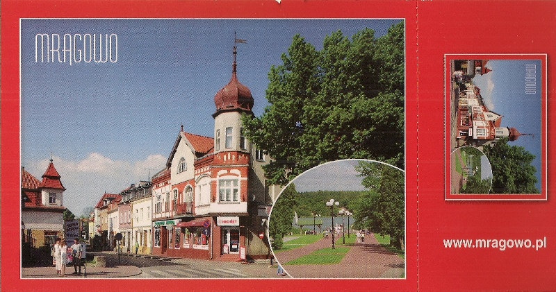 Album złożony z kart pocztowych. Zawiera: 1. Ratusz. - 2. Zabytkowe kamienice w centrum. - 3. Kościoły mrągowskie. - 4. Budynek Urzędu z pomnikiem Patrona. - 5. Jezioro Czos. - 6. Szlak kajakowy rzeką Dajny. - 7. Piknic Country. - 8. Festiwal Kultury Kresowej. - 9. Mazurska Noc Kabaretowa. - 10. Wieża Bismarcka. - 11. Góra Czterech Wiatrów. - 12. Wieżyczka Rabina.