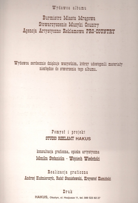 Album Country Mrągowo wydrukowano dzięki uprzejmości International Paper Kwidzyn S.A.