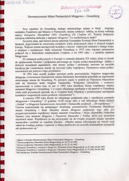 Grűnberg (Niemcy) - partnerskie miasto Mrągowa. Akt współpracy podpisano 6 czerwca 1993 roku.