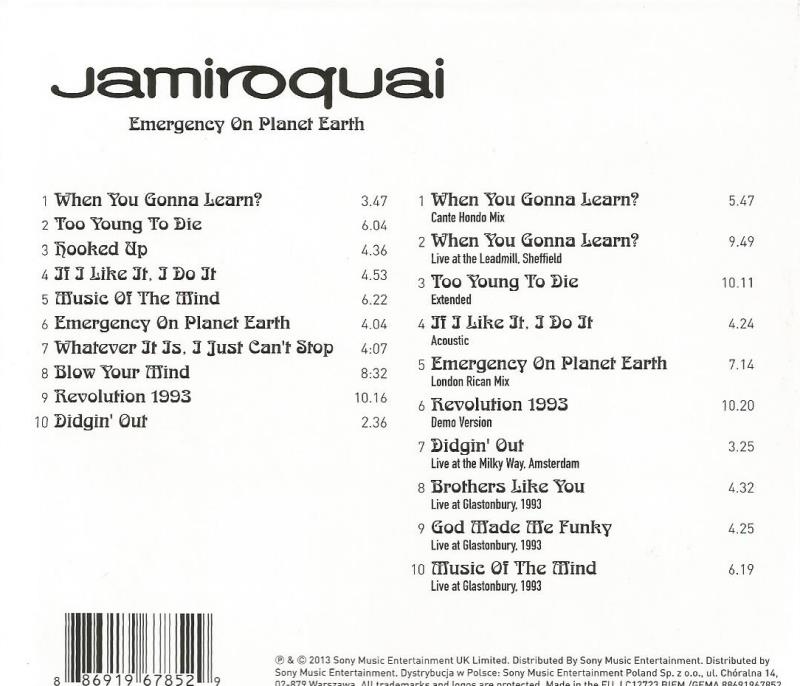 Zawiera: Zawiera: When You Gonna Learn ? (Remastered) ; Too Young To Die (Remastered) ; Hooked Up (Remastered) ; If I Like It, I Do It (Remastered) ; Music Of The Mind (Remastered) ; Emergency On Planet Earth (Remastered) ; Whatever It Is, I Just Can't Stop (Remastered) ; Blow Your Mind (Remastered) ; Revolution 1993 (Remastered) ; Didgin' Out (Remastered). CD 2: When You Gonna Learn ? (Cante Hondo Mix) ; When You Gonna Learn ? (Live At the Leadmill, Sheffield) ; Too Young To Die (Extended) ; If I Like It, I Do It (Acoustic) ; Emergency On Planet Earth (London Rican Mix) ; Revolution 1993 (Demo Version) ; Didgin' Out (Live At the Milky Way, Amsterdam) ; Brothers Like You (Live At Glastonbury, 1993) ; God Made Me Funky (Live At Glastonbury, 1993) ; Music Of The Mind (Live At Glastonbury, 1993).