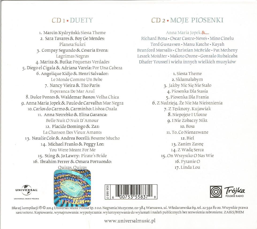 Zawiera: Zawiera: Siesta Theme (Marcin Kydryński) ; Planeta Sukri (Sara Tavares & Boy Ge Mendes) ; Lagrimas Negras (Compay Segundo & Cesaria Evora) ; Pequenas Verdades (Mariza & Buika) ; Por Una Cabeza (Diego el Cigala & Adriana Varela) ; Le Monde Comme Un Bebe (Angelique Kidjo & Henri Salvador) ; Esperanca De Mar Azul (Nancy Vieira & Tito Paris) ; Velha Chica (Dulce Pontes & Waldemar Bastos) ; Mae Negra (Anna Maria Jopek & Paulo de Carvalho) ; Lisboa Oxala (Carlos do Carmo & Carminho) ; Belle Nuit O Nuit D'Amour (Anna Netrebko & Elina Garanca) ; La Chanson Des Vieux Amants (Placido Domingo & Zaz) ; Besame Mucho (Natalie Cole & Andrea Bocelli) ; You Were Meant For Me (Michael Franks & Peggy Lee) ; Pirate's Bride (Sting & Jo Lawry) ; Quizas, Quizas (Ibrahim Ferrer & Omara Portuondo).