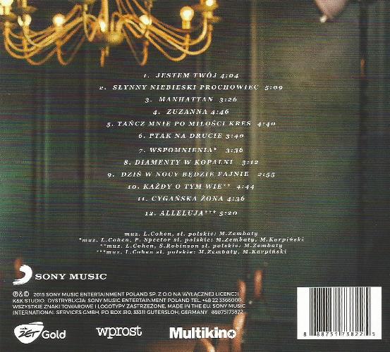 Zawiera: Zawiera: Jestem Twój / I’m Your Man ; Słynny niebieski prochowiec / Famous Blue Raincoat ; Manhattan / First We Take Manhattan ; Zuzanna / Suzanne ; Tańcz mnie po miłości kres / Dance Me To The End ... ; Ptak na drucie / Bird On The Wire ; Wspomnienia / Memories ; Diamenty w kopalni / Diamonds On A Mine ; Dziś w nocy będzie fajnie / Tonight Will Be Fine ; Każdy o Tym wie / Everybody Knows ; Cygańska żona / The Gypsy’s Wife ; Alleluja / Hallelujah.