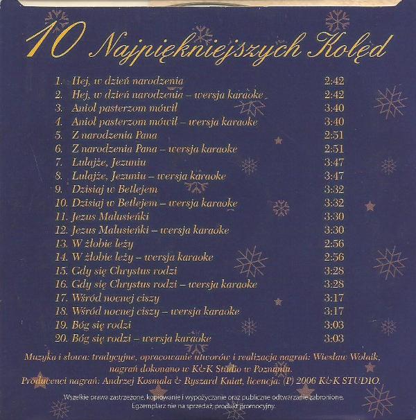 10 najpiękniejszych polskich kolęd. - [Warszawa] : K&K Studio, 2006. - 1 płyta audio (CD) : zapis cyfrowy, stereo ; 12 cm.