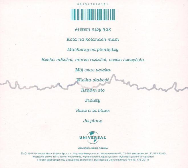 Zawiera: Zawiera: Jestem niby hak ; Kota na kolanach mam ; Macherzy od pieniędzy ; Rzeka miłości, morze radości, ocean szczęścia ; Mój czas ucieka ; Wielka słabość ; Rządzi zło ; Fiolety ; Busz ala blues ; Ja płonę.