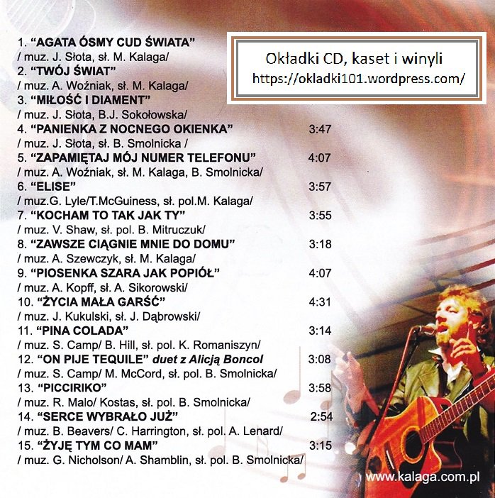 Zawiera: Zawiera: Agata ósmy cud świata ; Twój świat ; Miłość i diament ; Panienka z nocnego okienka ; Zapamiętaj mój numer telefonu ; Elise ; Kocham to tak jak Ty ; Zawsze ciągnie mnie do domu ; Piosenka szara jak popiół ; Życia mała garść ; Pina Colada ; On pije tequile ; Pizzirico ; Serce wybrało już ; Żyję tym co mam.