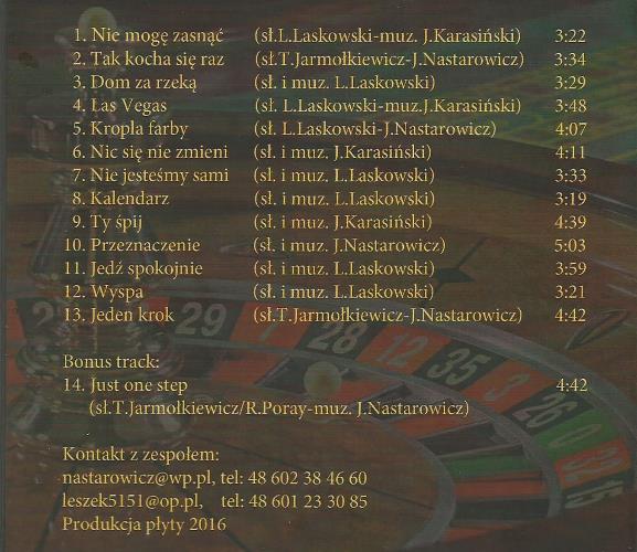 Zawiera: Zawiera: Nie mogę zasnać [3:22] ; Tak kocha się raz [3:34] ; Dom nad rzeką [3:29] ; Las Vegas [3:48] ; Kropla farby [4:07] ; Nic się nie zmieni [4:11] ; Nie jesteśmy sami [3:33] ; Kalendarz [3:19] ; Ty śpij [4:39] ; Przeznaczenie [5:03] ; Jedź spokojnie [3:59] ; Wyspa [3:21] ; Jeden krok [4:42] ; Just One Step [4:42].