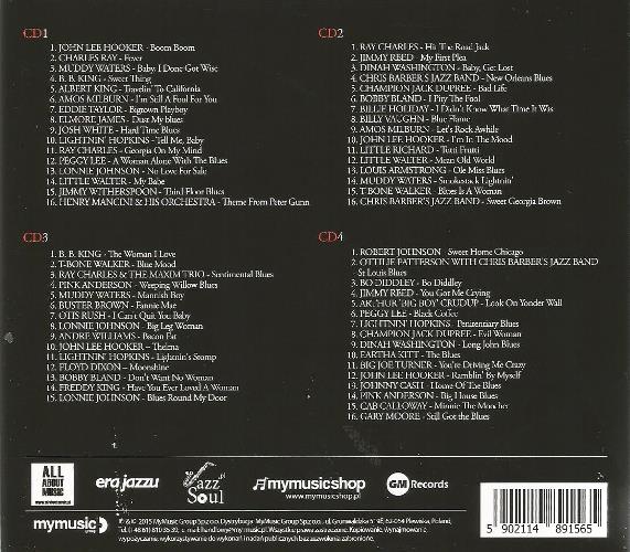 Zawiera: CD 4. B. B. KING - The Woman I Love ; T-BONE WALKER - Blue Mood ; RAY CHARLES & THE MAXIM TRIO - Sentimental Blues ; PINK ANDERSON - Weeping Willow Blues ; MUDDY WATERS - Mannish Boy ; BUSTER BROWN - Fannie Mae ; OTIS RUSH - I Can't Quit You Baby ; LONNIE JOHNSON - Big Leg Woman ; ANDRE WILLIAMS - Bacon Fat ; JOHN LEE HOOKER - Thelma ; LIGHTNIN' HOPKINS - Lightnin's Stomp ; FLOYD DIXON - Moonshine ; EARTHA KITT - The Blues ; BIG JOE TURNER - You're Driving Me Crazy ; JOHN LEE HOOKER - Ramblin' By Myself ; JOHNNY CASH - Home Of The Blues ; LONNIE JOHNSON - Big Leg Woman ; PINK ANDERSON - Big House Blues CAB CALLOWAY - Minnie The Moocher ; GARY MOORE - Still Got the Blues.