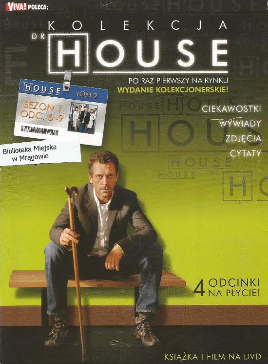 Dr House. Sezon 1, odcinki 6-9 / reżyseria Deran Sarafian [et al.] ; scenariusz Joel Anderson [et al.]. - Warszawa : Edipresse Polska, copyright 2010. - 1 płyta audio (DVD) (168 min) : dźwiękowy, kolorowy ; 12 cm + Dodatek drukowany.