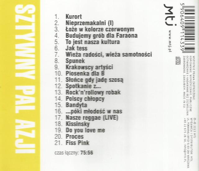 Zawiera: Zawiera: Kurort ; Nieprzemakalni (I) ; Łoże w kolorze czerwonym ; Budujemy grób dla Faraona ; To jest nasza kultura ; Jak tess ; Wieża radości, wieża samotności ; Spunek ; Krakowscy artyści ; Piosenka dla B ; Słońce gdy jadę szosą ; Spotkanie z... ; Rock'n'rollowy roba ; Polscy chłopcy ; Bandyta ; ...póki młodość w nas ; Nasze reggae (LIVE) ; Kissinsky ; Do you love me ; Proces ; Fiss Pink.