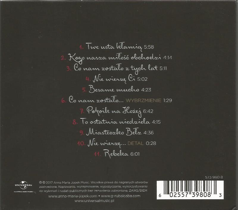 Zawiera: Zawiera: Twe usta kłamią ; Kogo nasza miłość obchodzi ; Co nam zostało z tamtych lat ; Nie wierzę Ci ; Besame mucho ; Co nam zostało... wybrzmienie ; Pokoik na Hożej ; To ostatnia niedziela ; Miasteczko Bełz ; Nie wierzę... detal ; Rebeka.