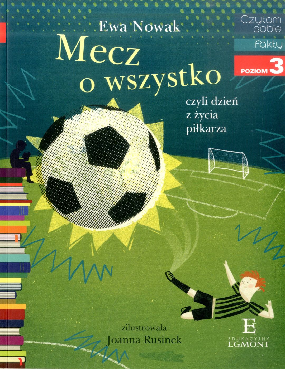 Mecz o wszystko, czyli Dzień z życia piłkarza / Ewa Nowak ; zilustrowała Joanna Rusinek. - Warszawa : Wydawnictwo Egmont Polska, 2016. - 74, [6] stron, [1] karta tablic : ilustracje kolorowe ; 19 cm.
