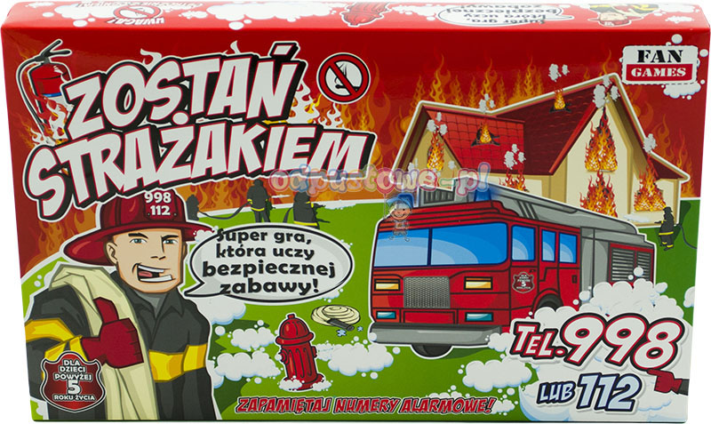 Zostań strażakiem - Mrągowo : PPUH FAN, [201-?]. - 1 pudełko : plansza, karty, pionki ; 39x26x4 cm + instrukcja.