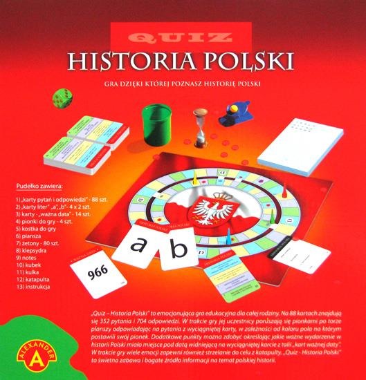 Gra edukacyjna dla całej rodziny. Na 88 kartach znajdują się 352 pytania i 704 odpowiedzi. W trakcie gry jej uczestnicy poruszają się pionkami po torze planszy i odpowiadają na pytania z wyciągniętych kart, w zależności od koloru pola na którym postawili swój pionek. Dodatkowe punkty można zdobyć określając jakie ważne wydarzenie w historii Polski miało miejsce pod datą widniejącą na karcie z talii kart "ważnej daty". W trakcie gry wiele emocji zapewnią również strzały do celu z katapulty, które będą sprawdzianem umiejętności manualnych graczy. [empik.pl]