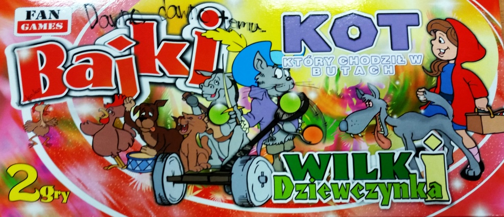 Kot, który chodził w butach ; Wilk i dziewczynka. - Mrągowo : PPUH FAN, [2014]. - 1 pudełko : plansza, pionki ; 17x36x3 cm + instrukcja.